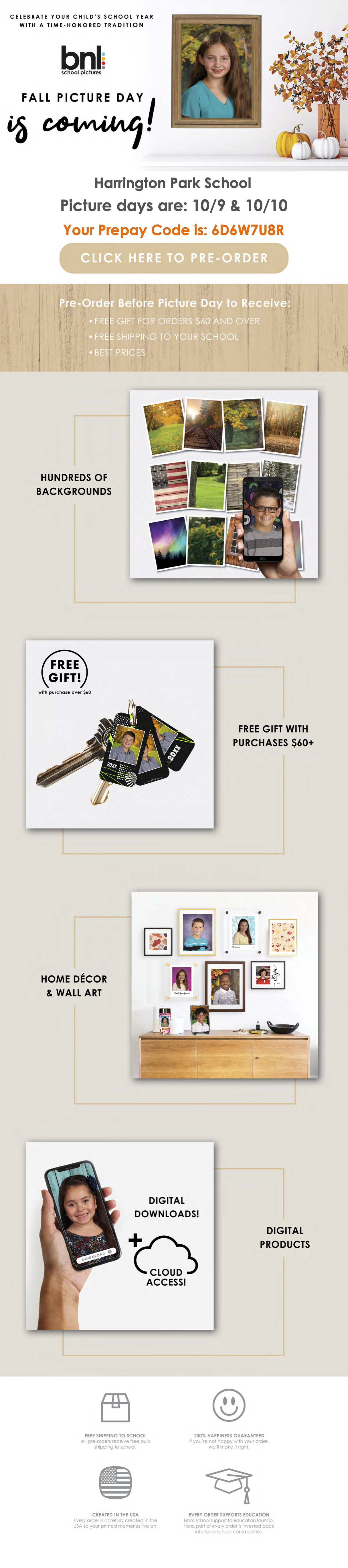 Here is a link and code to pre-order https://order.bnlschoolpictures.com/login - PrePay Code - 6D6W7U8R -